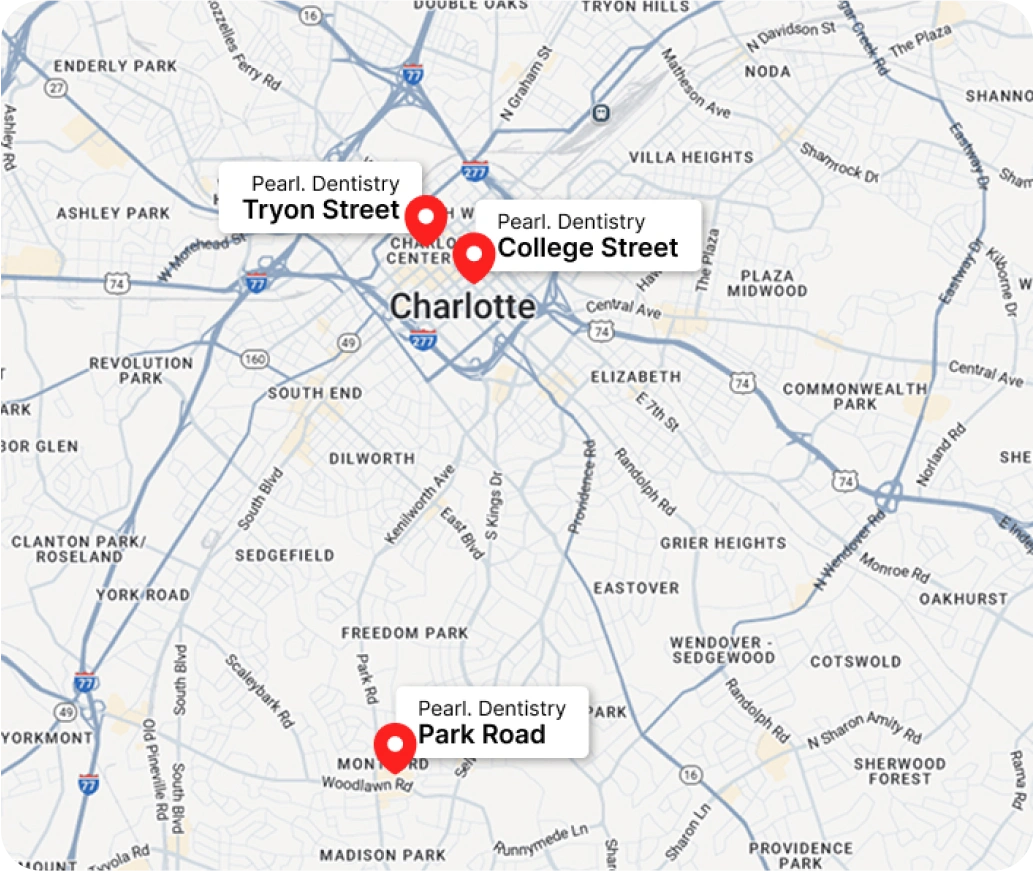 Pearl Dentistry has three convenient offices across Charlotte, making it easy to fit dental care into your life.